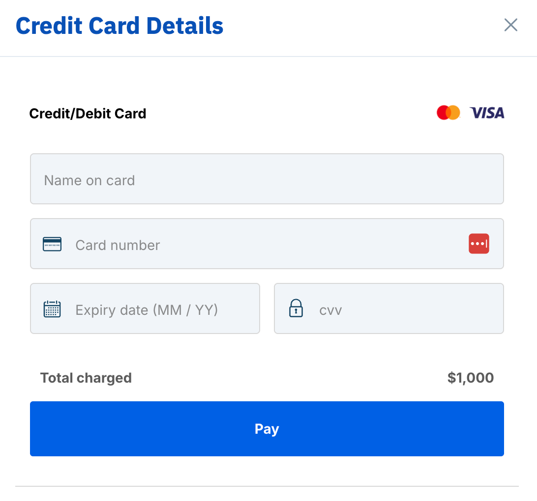 - Fill in your card number, expiry date, and CVV. Make sure the name on the card matches your KYC details.