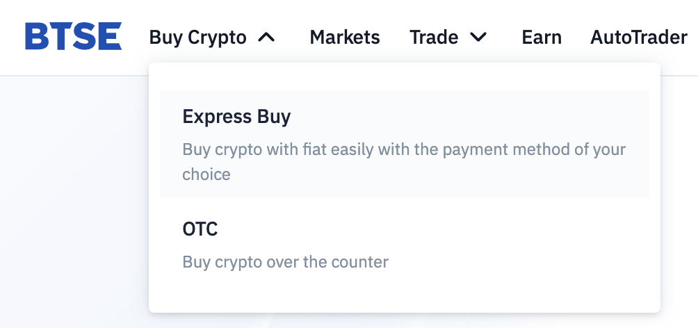 From the top navigation menu, hover over "Buy Crypto" and select "Express Buy" from the dropdown.