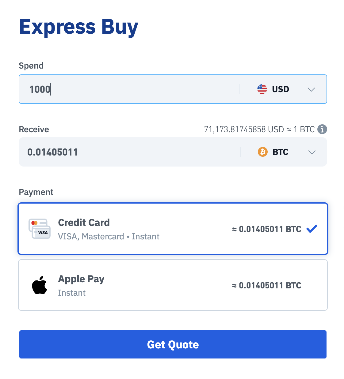 Click "Get Quote". A summary of your transaction will appear, showing the exchange rate and the exact amount of BTC you'll receive.