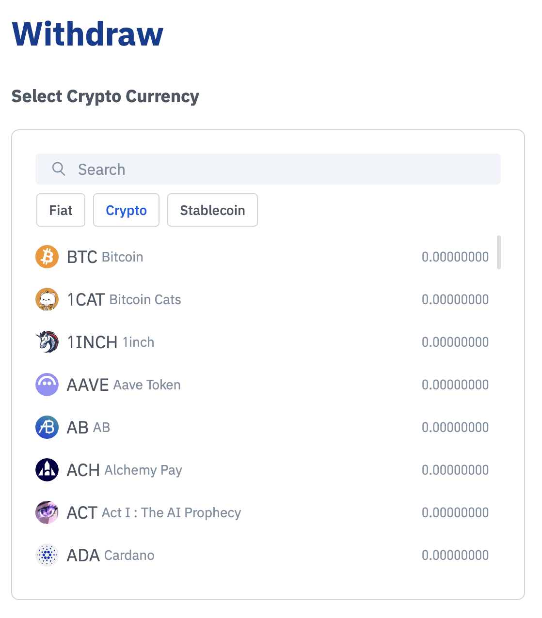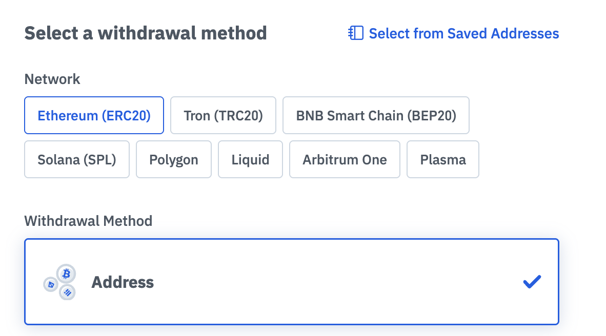 Select the cryptocurrency you wish to withdraw
