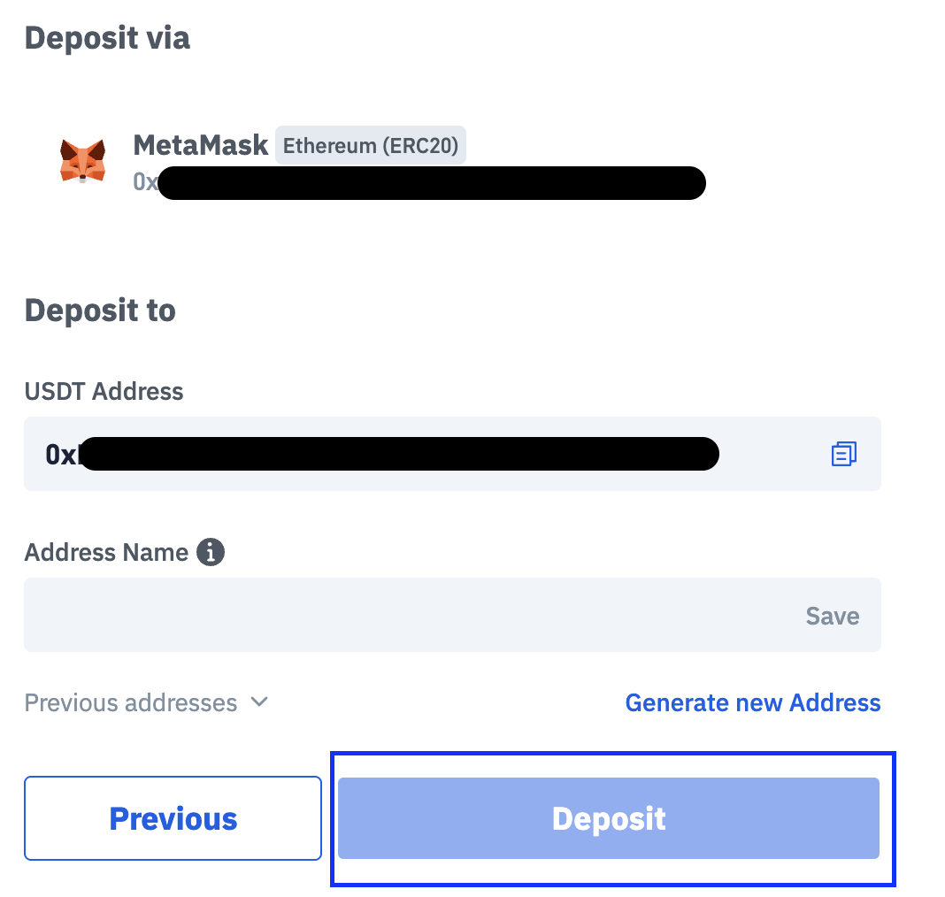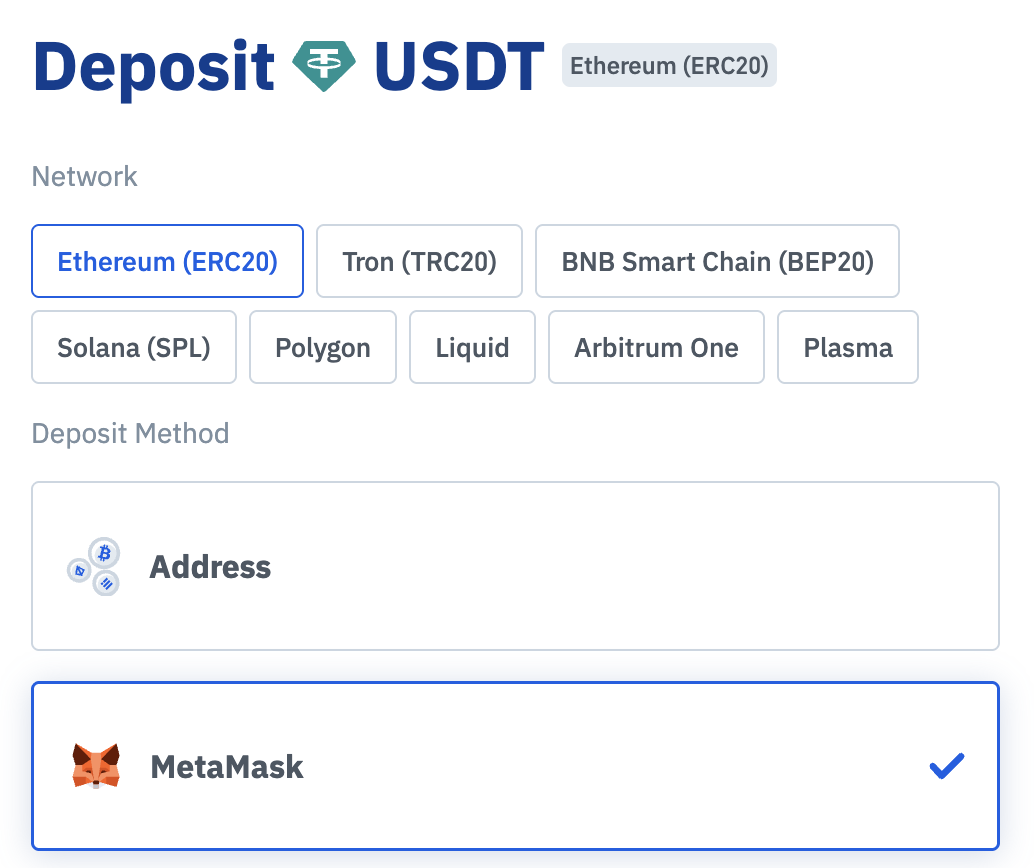 • Make sure this matches the network selected in your MetaMask wallet. Depositing via the wrong network may result in loss of funds.